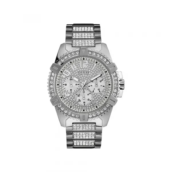 GUESS 젠스 프론티어 시계는 즉시 알아볼 수 있는 눈부시고 다면적인 디자인을 자랑합니다.