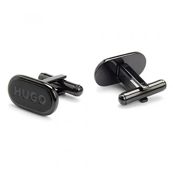 HUGO 로고가 새겨진 무광 및 유광 스틸 소재의 우아한 타원형 커프링크스는 미묘하면서도 강렬한 인상을 선사합니다.