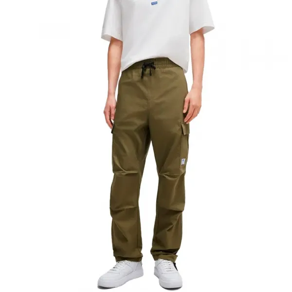 왼쪽 카고 포켓에 은은하지만 독특한 휴고 블루 워크웨어 라벨이 자랑스럽게 부착되어 품질과 정품 HUGO 디자인의 특징을 나타냅니다.