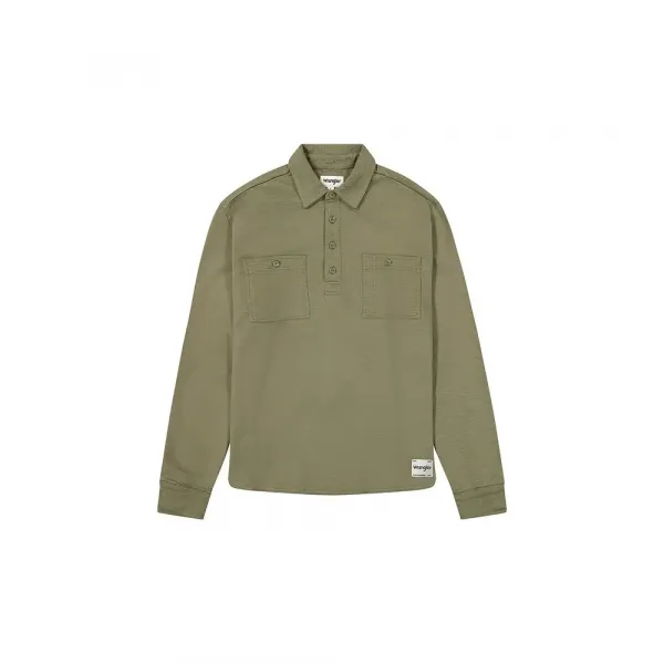하루 종일 편안함을 유지하는 100% 면 소재로 제작된 이 폴로는 스트레이트 헴, 두 개의 버튼 가슴 포켓, 그리고 시그니처 브랜드 터치를 위한 Wrangler 로고가 있는 우븐 로고가 특징입니다.