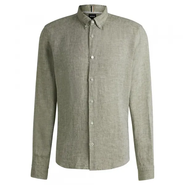 이 제품은 통기성을 위해 100% 리넨 소재로 레귤러 핏으로 제작되었습니다.