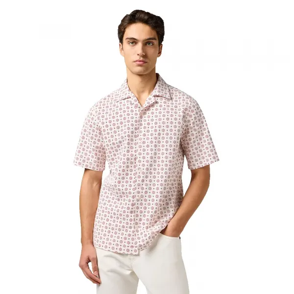 부드럽고 통기성이 좋은 100% 코튼 소재로 제작된 반팔 리조트 셔츠는 레귤러 핏으로 제작되어 리조트웨어나 캐주얼한 외출에 더욱 스마트한 선택입니다.