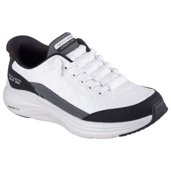 Heel Pillow®로 디자인된 이 슬립온 스타일은 퀼팅 처리된 Cozy Fit™과 묶인 스트레치 끈이 있는 합성 오버레이 갑피, Contour Foam™ 미드솔 쿠셔닝, 그리고 시그니처 쿠션 Skechers Air-Cooled Memory Foam® 깔창이 특징입니다.