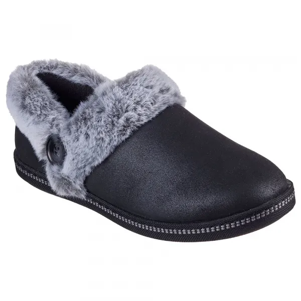 이 캐주얼 컴포트 슬리퍼는 인조 모피 트리밍이 있는 비건 레더 갑피와 쿠션 처리된 Skechers Memory Foam™ 컴포트 풋베드가 특징입니다.