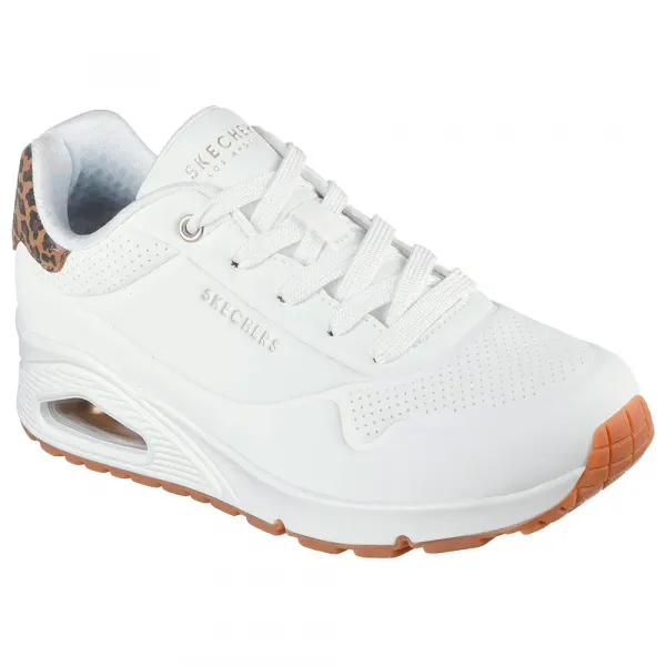 이 레이스업 패션 스니커즈는 레오파드 프린트 힐 머스타쉬가 있는 합성 갑피, 스케쳐스 에어 쿨드 메모리 폼® 인솔, 스케치-에어® 비저블 에어 쿠션 미드솔을 특징으로 합니다.