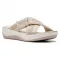 부드러운 베이지색 스트랩 스트라이프 어퍼와 현대적인 버클 디테일이 발을 완벽하게 감싸주며, 쿠션 소프트™풋베드와 곡선 디자인으로 편안함을 최우선으로 합니다.