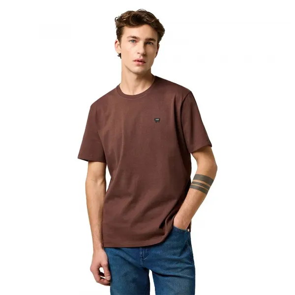 마호가니 색상의 다용도 반팔 Sign Off 티셔츠는 좋아하는 Wrangler 데님과 완벽하게 어울리는 데일리 필수 아이템입니다.