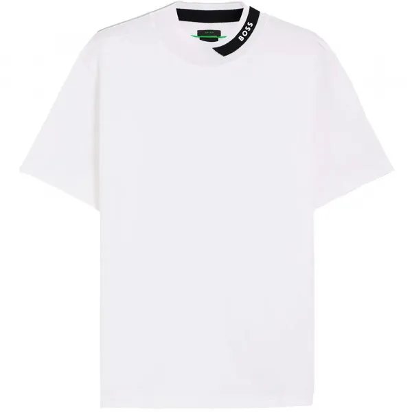 특징: - 핏 길이: 스탠다드 길이 - 핏: 레귤러 핏 - 네크라인: 목넥 - 소매 길이: 반소매 사양: - 소재: 면 96%, 엘라스테인 4%, 허리 밴드: 엘라스테인 9%, 폴리아미드 38%, 폴리에스터 53%