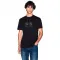 이 정교하게 디자인된 티셔츠의 주요 특징은 시선을 즉시 사로잡는 역동적이고 다중 질감의 로고입니다.