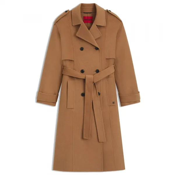 특징: - 여유로운 핏 - 노치 라펠 - 상단 잠금: 벨트 여밈 - 버튼 개수: 더블 브레스트 - 상단 포켓: 싱글 웰트 포켓 - 소매 스트랩 - 뒷트임 - 안감 없음 - 표준 길이 사양: - 소재: 폴리에스터 82%, 울 18% - 안감: 폴리에스터 100% 관리: - 세탁 금지 - 표백 금지 - 건조기 사용 금지 - 저온 다림질 - 약한 드라이클리닝 (P)