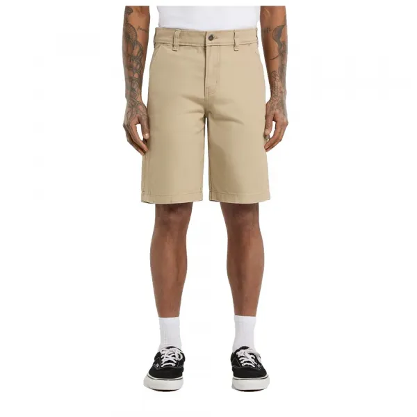 12oz 코튼 캔버스 소재로 제작된 이 편안하고 내구성이 뛰어난 쇼츠는 전면에 경사진 포켓, 지퍼와 앞 단추 여밈, 후면에 패치 포켓, 망치 고리, 자 및 도구 포켓, 그리고 후면 패치 포켓에 염색된 디키즈 직조 라벨이 특징입니다.