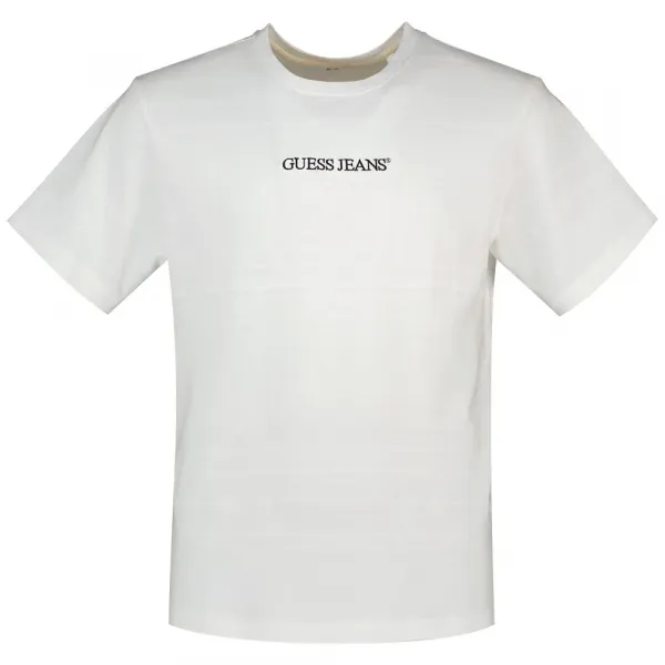 이 티셔츠 디자인의 중심에는 세계적으로 유명한 GUESS 트라이앵글 로고가 가슴에 자랑스럽게 새겨져 있습니다.