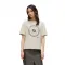 이 디자인의 핵심은 가슴 부분의 눈에 띄는 그래픽 스탬프입니다.