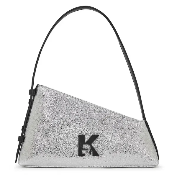 최첨단 창의성이 온통 반짝이는 마감으로 된 이 비대칭 숄더백의 기능성과 만났습니다.