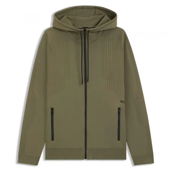 특징: - 레귤러 핏 - 후드 - 긴소매 - 포켓 상단: 사이드 진입형 포켓 - 표준 길이 사양: - 소재: 100% 폴리에스터 관리: - 30°C 약하게 짜서 하는 세탁 - 표백 금지 - 건조기 사용 금지 - 낮은 온도로 다림질 - 드라이클리닝 금지