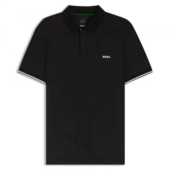 특징: - 소맷단: 플랫 니트 소맷단 - 기장: 표준 기장 - 버튼 개수: 3개 - 핏: 레귤러 핏 - 네크라인: 플랫 니트 칼라 - 소매 길이: 짧은 소매 사양: - 소재: 폴리에스터 93% (재활용), 엘라스테인 7%