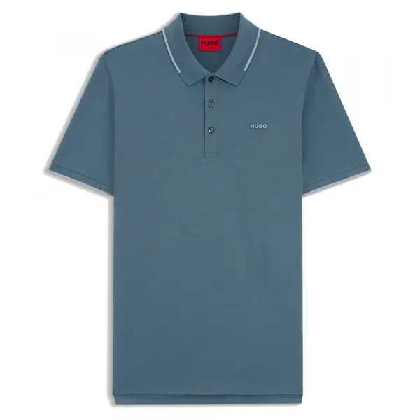 신축성 있는 코튼 피케 소재로 제작된 HUGO 남성복의 슬림핏 폴로 셔츠입니다.