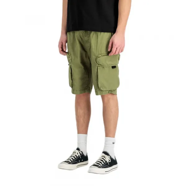슬립 포켓의 자수 알파 인더스트리 로고와 왼쪽 카고 포켓의 독특한 플래그 라벨은 정품성과 전통을 나타냅니다.