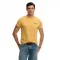 상징적인 티셔츠 모양을 위한 골지 크루 넥라인과 짧은 소매가 특징입니다.