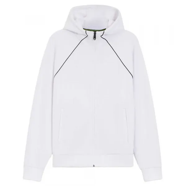 특징: - 레귤러 핏 - 후드 - 상단 잠금: 지퍼 클로저 - 상단 포켓: 웰트 포켓 - 긴 소매 - 골지 커프스 - 표준 길이 사양: - 소재: 면 53%, 폴리에스터 44%, 엘라스테인 3%, 포켓 안감: 폴리에스터 100%, 골지: 면 95%, 엘라스테인 5% 관리: - 30°C 순한 섬세 코스 세탁 - 표백 금지 - 회전식 건조 금지 - 낮은 온도로 다림질 - 약하게 드라이클리닝 가능