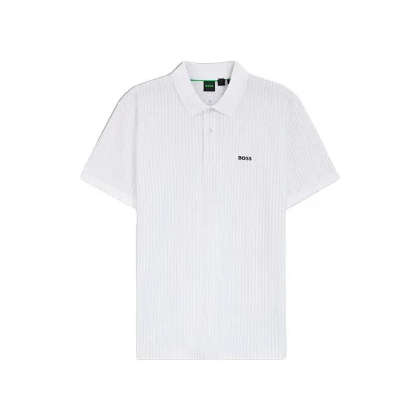 * 세련된 미학: 클래식한 스포츠 실루엣에 현대적인 세련됨을 더하는 칼라와 커프스의 대비 립 디테일을 포함한 시그니처 BOSS 디테일이 특징입니다.