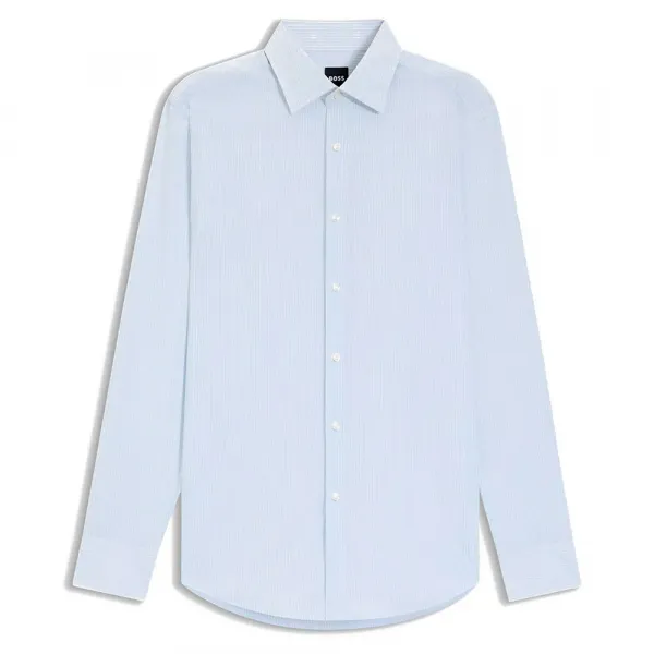 특징: - 슬림핏 - 켄트 칼라 - 라운드 커프스 사양: - 소재: 폴리아미드 91%, 엘라스테인 9% 관리: - 찬물 세탁 - 표백제 사용 금지 - 회전 건조 금지 - 다림질 금지 - 드라이클리닝만 가능
