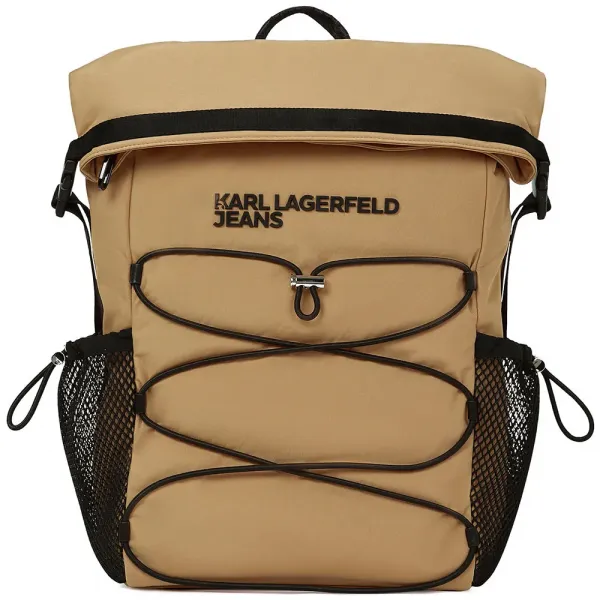 롤탑 디자인, 앞면 번지 코드 디테일, 메쉬 사이드 포켓이 특징이며, 기능적이면서 스트리트 패션에 어울리는 대담한 KARL LAGERFELD JEANS 브랜딩으로 마무리되었습니다