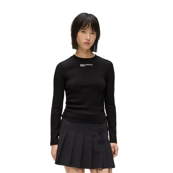 클래식한 크루 넥라인과 은은한 자수 로고가 자연스러운 우아함을 더합니다.