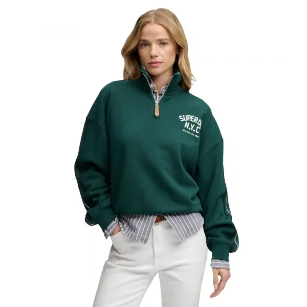 - 드롭 숄더와 립 트리밍 - 소매의 대비되는 스트라이프와 가슴의 아플리케 패치 텍스트 - 브랜딩 된 지퍼 사양: - 소재: 면 72%, 재활용 폴리에스터 28% 관리: - 30°C 순한 코스 세탁 - 표백 금지 - 건조기 사용 금지 - 낮은 온도에서 다림질 - 드라이클리닝 금지