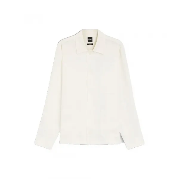 - 포인트 칼라와 세 개의 패치 포켓이 있는 릴랙스드 핏 오버셔츠 - 퓨어 린넨.