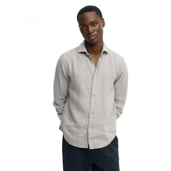 - 버튼 잠금 방식의 싱글 칼라 - 버튼 잠금 방식의 긴 소매 - 밑단에 시그니처 탭 사양: - 소재: 100% 린넨 관리: - 30°C 순한 섬세 코스 세탁 - 표백하지 마십시오 - 일반 건조 과정 - 저온에서 다림질 - 드라이클리닝하지 마십시오