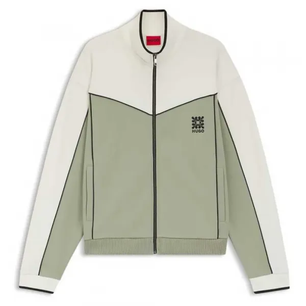 밑단에 대비되는 스트라이프가 있는 골지 집업 터틀넥.