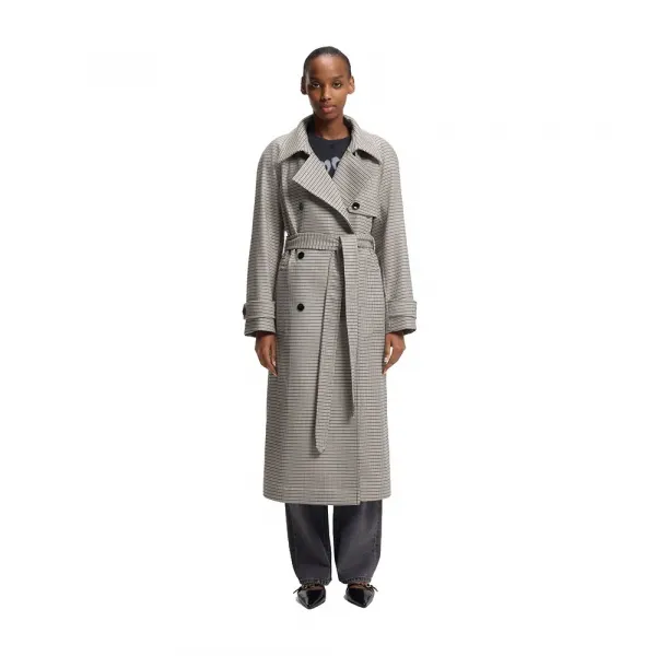 특징: - 레귤러 핏 - 오버사이즈 라펠 - 상단 잠금: 벨트 여밈 - 단추 개수: 더블 브레스티드 - 상단 포켓: 싱글 웰트 포켓 - 벨트 커프스 - 뒷트임 - 안감 없음 - 롱 기장 사양: - 소재: 포켓 안감: 100% 면, 64% 폴리에스터, 34% 비스코스, 2% 엘라스테인, 100% 폴리에스터 관리: - 세탁 금지 - 표백 금지 - 건조기 사용 금지 - 낮은 온도에서 다림질 - 약하게 드라이클리닝 가능