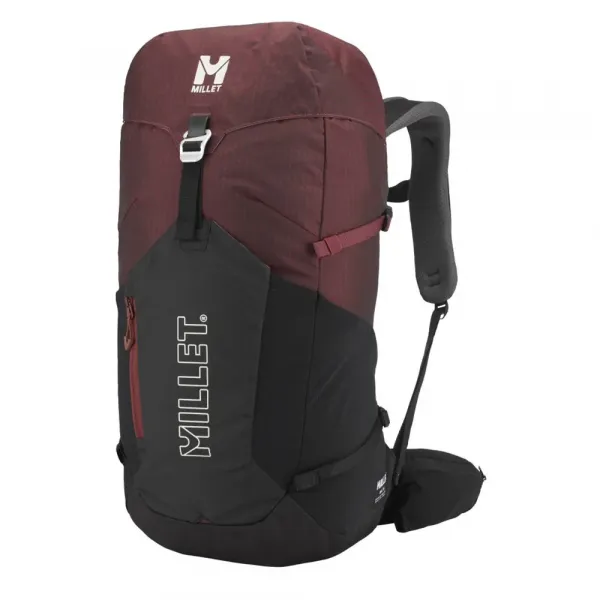 상단의 단일 버클은 확장 가능한 전면 포켓에 부착됩니다.
