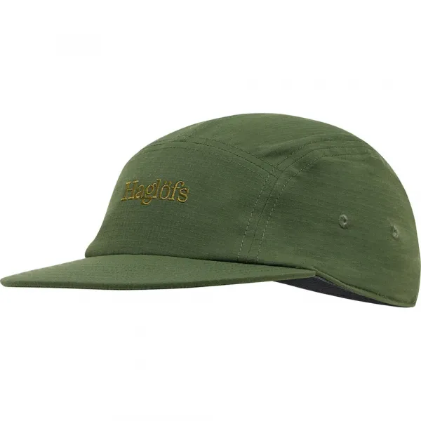 이 5패널 모자는 플랫 브림과 추가 통풍을 위한 아이렛을 특징으로 합니다.