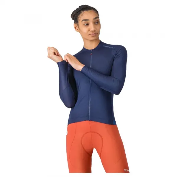 통기성, 편안함, 완벽한 핏을 위한 Castelli-엔지니어링 Air_O Stretch 원단 통기성과 공기역학에 최적화된 여름용 경량 원단, 쌀쌀한 날씨에 적합 편안함을 위한 컷 아웃 소매 끝 귀중품을 위한 네 번째 지퍼 보안 포켓을 포함한 3개의 후면 포켓 사용하기 쉬운 지퍼 풀이 달린 전체 길이 YKK® Vislon® 지퍼 저지 위치를 유지하기 위한 허리 고무 밴드에 실리콘 처리 UPF 30.
