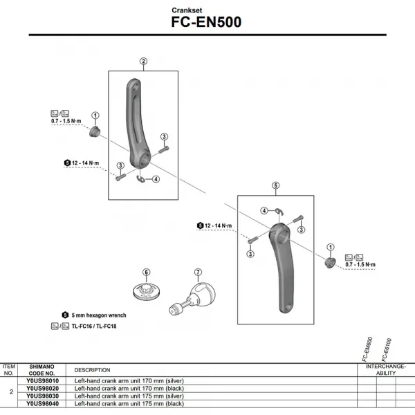 --- 기술 사양: * 브랜드: SHIMANO * 모델: FC-EN500 * 시마노 부품 번호: Y0US98030 * 카테고리: 자전거 부품 * 하위 카테고리: 크랭크 * 위치: 좌측 크랭크 암 (드라이브 비사용 측) * 색상: 실버 * 액슬 인터페이스: 사각 테이퍼 * 권장 용도: 전기 자전거 * 속성: 크랭크, 전기 자전거, 센서 없음 * 패키지 내용물: 실버 색상의 SHIMANO FC-EN500 좌측 크랭크 암 1개 (크랭크 고정 볼트는 일반적으로 포함되지 않음)