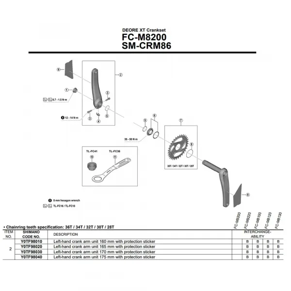 기술 사양: * 브랜드: SHIMANO * 모델: FC-M8200 * 부품 번호: Y0TF98020 * 제품: 왼쪽 크랭크 암 * 카테고리: 크랭크, 자전거 부품 * 종목: MTB 사이클링, 다운힐, 프리라이드 * 기술: HOLLOWTECH II * 스핀들 인터페이스: 24mm * 센서 호환성: 센서 없음 * 사용 가능한 길이: 165mm, 170mm, 175mm