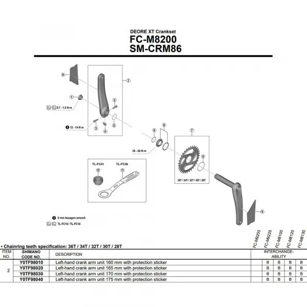 --- 기술 사양: * 제품: SHIMANO FC-M8200 Y0TF98040 왼쪽 크랭크 암 * 시리즈: SAINT M820 * 종목: MTB 사이클링, 다운힐, 프리라이드, 그래비티 * 유형: 크랭크 (교체 암) * 호환성: SHIMANO SAINT FC-M8200 및 FC-M825 크랭크셋 전용 * 스핀들 인터페이스: HOLLOWTECH II (24mm 스핀들) * 크랭크 암 길이: 170mm