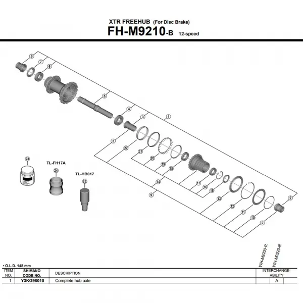 속성 기술 사양 * 브랜드: SHIMANO * 시마노 부품 번호(SPN): Y3KG98010 * 제품 카테고리: 예비 부품 * 하위 카테고리: 허브 * 호환성: 시마노 리어 휠 WH-M9220-TL-R12-B-29 전용 * 위치: 리어 * 오버 락 너트 치수(O.