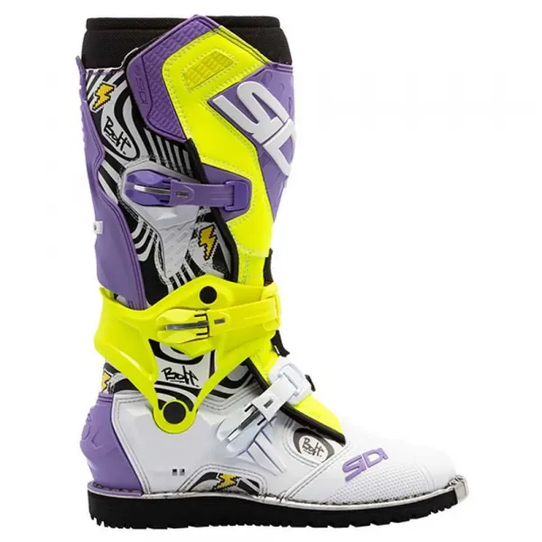 기술 사양: 제품 유형: 부츠 성별: 남성 분야: 모토크로스 / 엔듀로 밑창: Vibram® HD 엔듀로 밑창 잠금 시스템: 4개의 미세 조정 및 교체 가능한 버클 발목 지지대: 통합된 과신전 방지 블록이 있는 플렉스 시스템 보호 기능: 교체 가능한 전면 정강이 보호대, 강화된 해부학적 힐, 보호된 발가락 부분 통풍: 전략적으로 배치된 천공 및 통기성 내부 안감