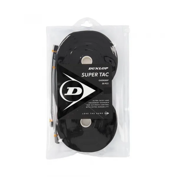 안전한 연결이 만드는 차이를 느끼고 자신감 있게 코트를 지배하십시오 기술 사양: 제품: 던롭 슈퍼택 오버그립 종목: 테니스 카테고리: 라켓 하위 카테고리: 오버그립 패키지 내용물: 마감 테이프 포함 개별 오버그립 30개 표면 유형: 고점착성 두께: 약 0.
